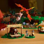 Recrie a toca de hobbit na encosta de Bilbo, completa com uma porta redonda e um interior ricamente mobiliado, incluindo um hall de entrada, escritório e sala de estar. Dê vida às cenas com funções interativas. Transforme uma carta em chamas no The One Ring™ ou faça Bilbo desaparecer com o giro de um mostrador. Repleto de detalhes do filme, do cavalo e da carroça de Gandalf ao dragão de fogos de artifício e à Árvore da Festa, este conjunto é uma exibição encantadora para a casa ou escritório.